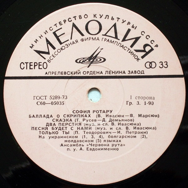 - Ensemble – Мелодия (tracks: B1 to B5), Червона Рута (tracks: A1 to A5)