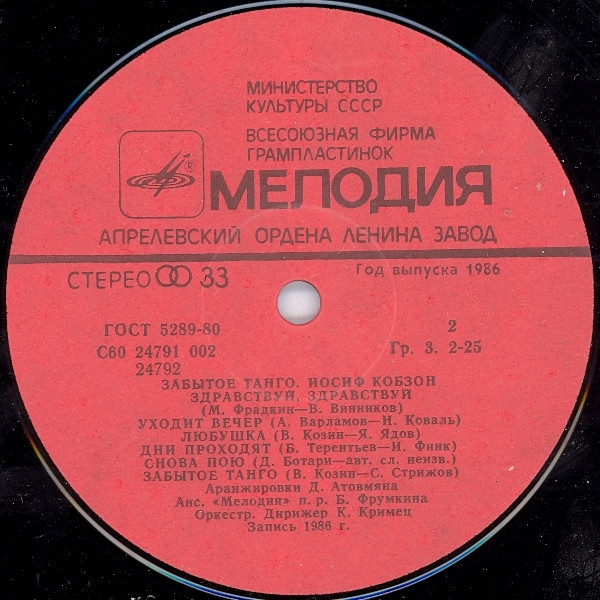 - Music By – В. Козин* (tracks: A7, B3, B6)
