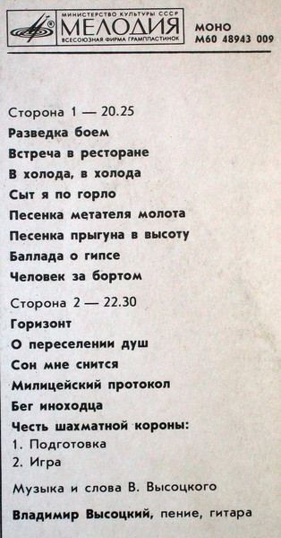 - Vocals, Guitar, Music By, Lyrics By – Владимир Высоцкий