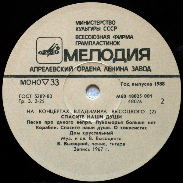 - Recorded By – Всесоюзная Студия Грамзаписи