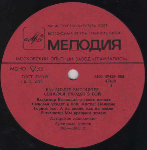 - Written-By, Performer [Авторское исполнение] – Владимир Высоцкий