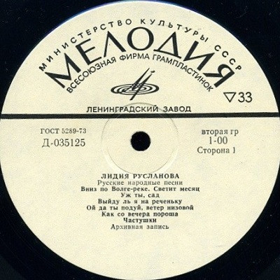 - Vocals – Лидия Русланова