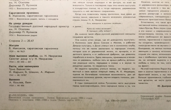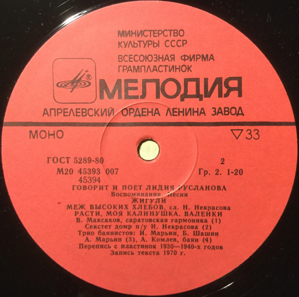 - Recorded By – Всесоюзная Студия Грамзаписи