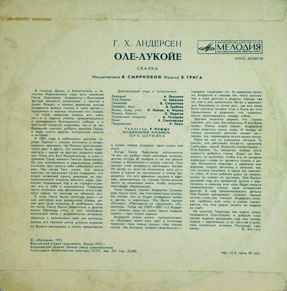 - Recorded By – Всесоюзная Студия Грамзаписи