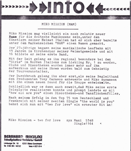 - Distributed By – Bernhard Mikulski Schallplatten-Vertriebs-GmbH