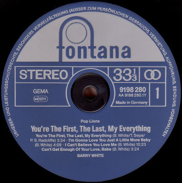 You're The First, The Last, My Everything Written-By – P.S. Radcliffe*, T. Sepe* Written-By – P.S. Radcliffe*, T. Sepe* |