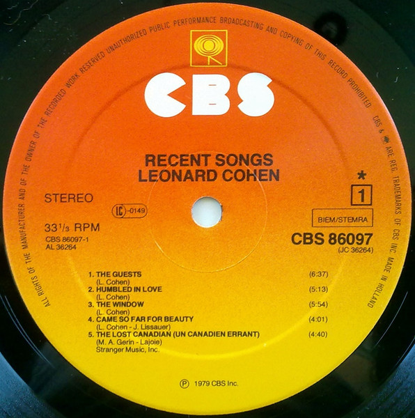 - Written-By – Leonard Cohen (tracks: A1 to A3, B1 to B5)