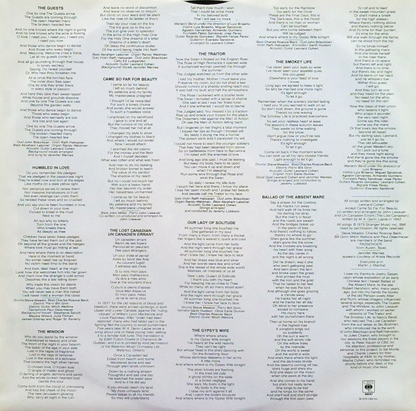 - Arranged By – Leonard Cohen (tracks: A1 to A3, A5 to B5)