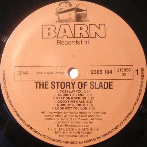 - Written-By – Jimmy Lea* (tracks: A1, A3 to D2, D4 to D6), Noddy Holder (tracks: A1, A3 to D2, D4 to D6)