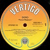 Embossed cover (Doro-logo & hammer). First releases issued with a round white sticker on sleeve (+ WARLOCK)