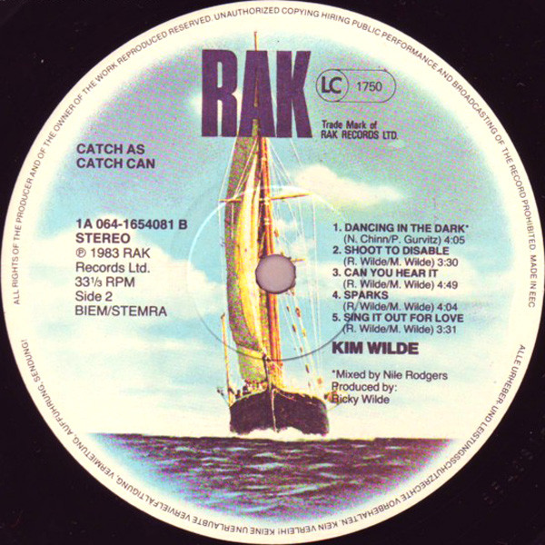 This issue has NO etched "J.C." signature in the runouts; otherwise identical to Kim Wilde - Catch As Catch Can.