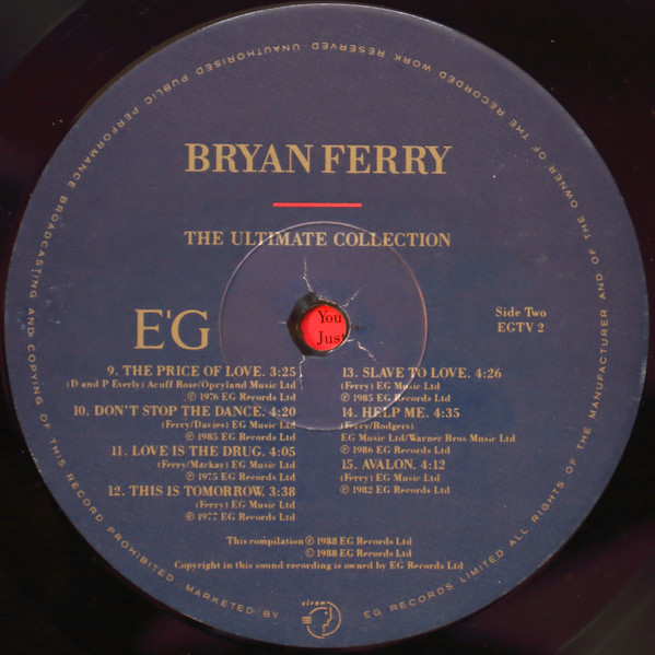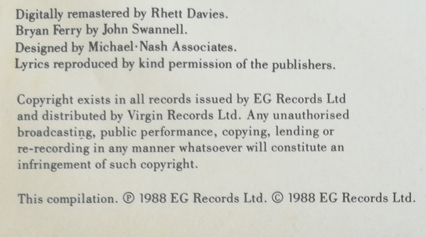 Sleeve states: This Compilation ℗1988 EG Records Limited. ©1988 EG Records Limited.