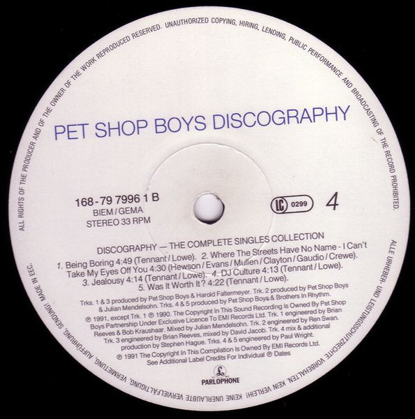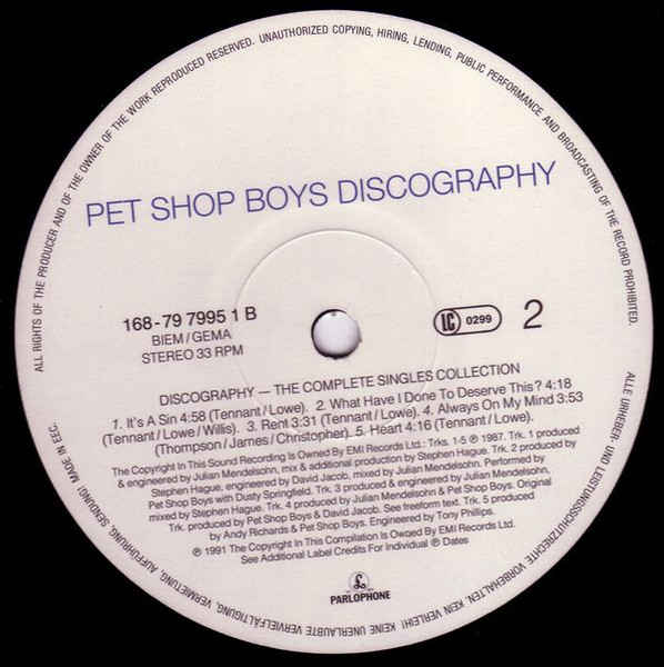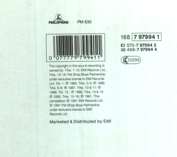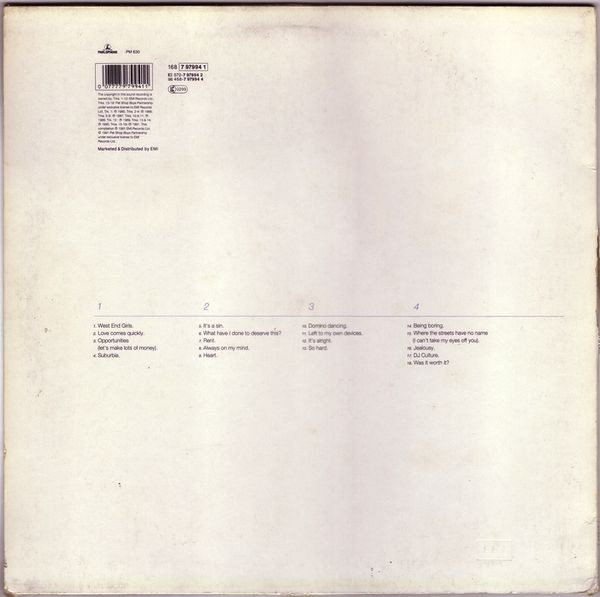 © 1991 Pet Shop Boys Partnership under exclusive license to EMI Records Ltd.