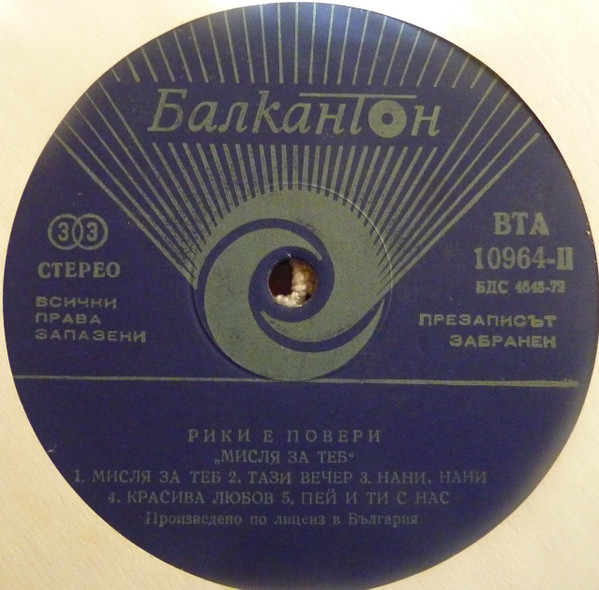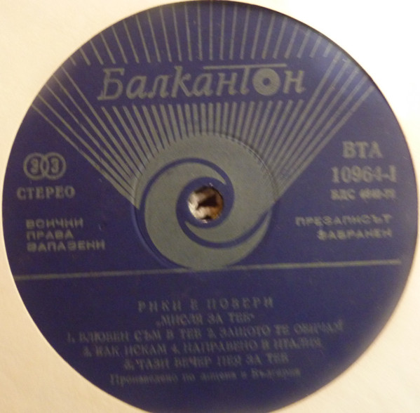 Dark blue labels with titles in Bulgarian on labels. Titles on back sleeve both in Bulgarian and English.