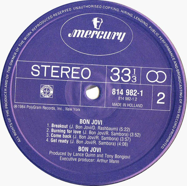 This version has no bass clef stamped near B-side spindlehole as in Bon Jovi.