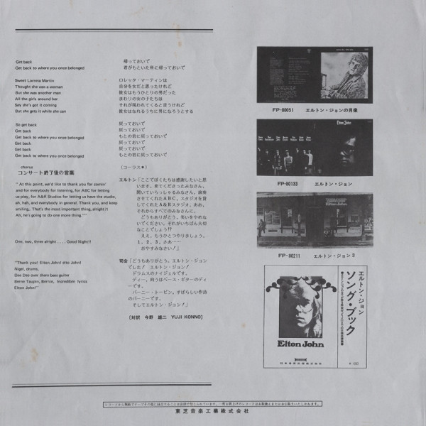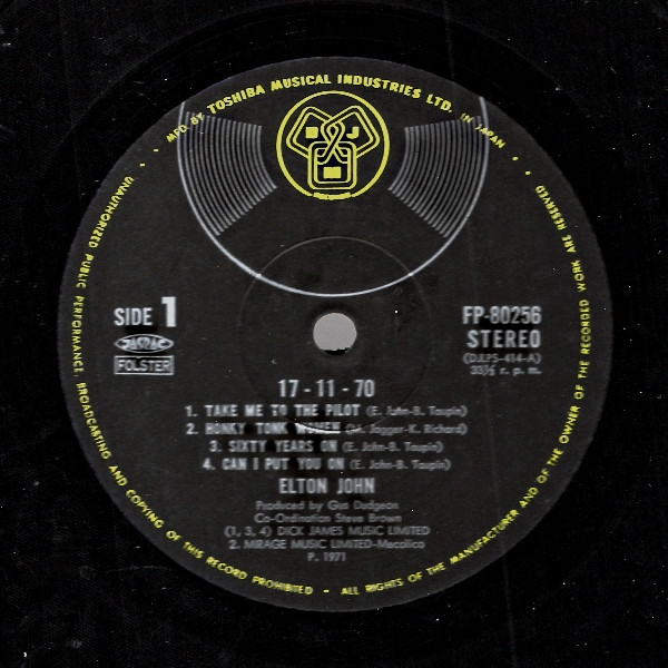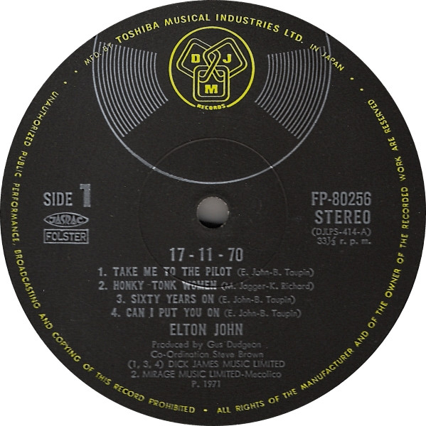 Tracks A1, A3, A4, B1 & B2; Dick James Music Limited, track A2; Mirage Music Limited - Mecolico, track B2b; Carlin Music Corporation and track B2c; Northern Songs Limited. ℗ 1971