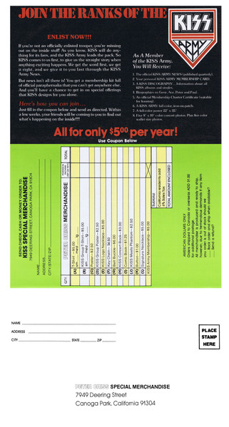 Inner sleeve with pictures of the other Kiss member's solo albums, Peter Criss poster, credits insert, and an order form envelope.