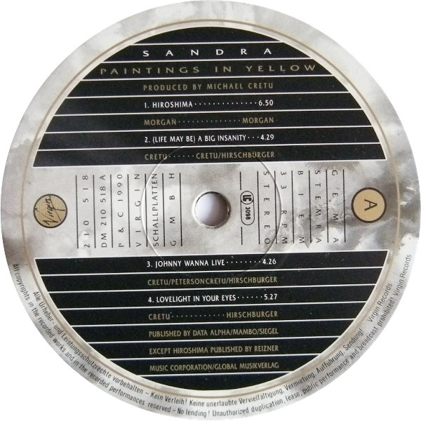 - Phonographic Copyright ℗ – Virgin Schallplatten GmbH