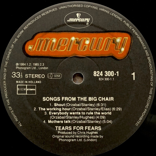 Songs From The Big Chair with blue labels and B.I.E.M. STEMRA.