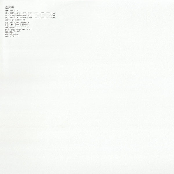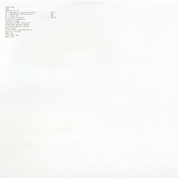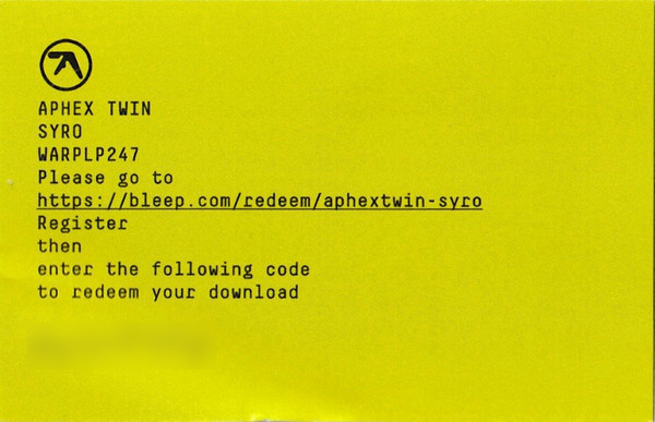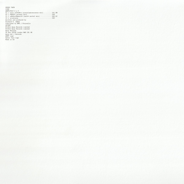 Initial copies ordered directly from Warp/Bleep contain a small green Aphex logo sticker and a plastic full colour card.