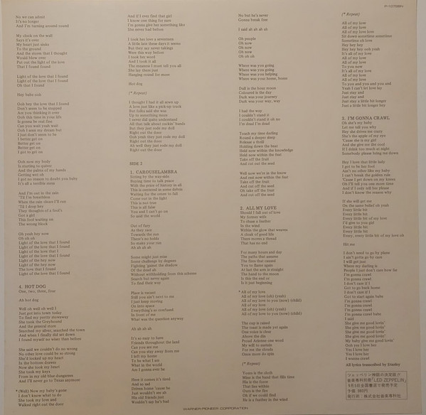 - Written-By – Jimmy Page (tracks: A1, A3, A4, B1, B3), John Paul Jones (tracks: A1, A2, A3, A4, B1, B2, B3), Robert Plant (tracks: A1, A2, A3, A4, B1, B2, B3)