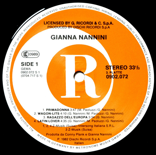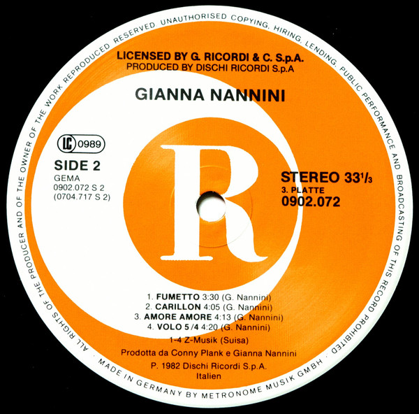 ℗ 1982 Dischi Ricordi S.p.A. Italien