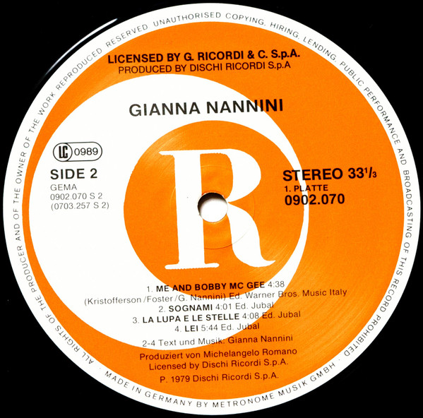 Me And Bobby McGee Written-By – Foster*, G. Nannini*, Kristofferson* Written-By – Foster*, G. Nannini*, Kristofferson* |