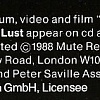 ℗ 1989 Mute Records Limited © 1988 Mute Records Limited