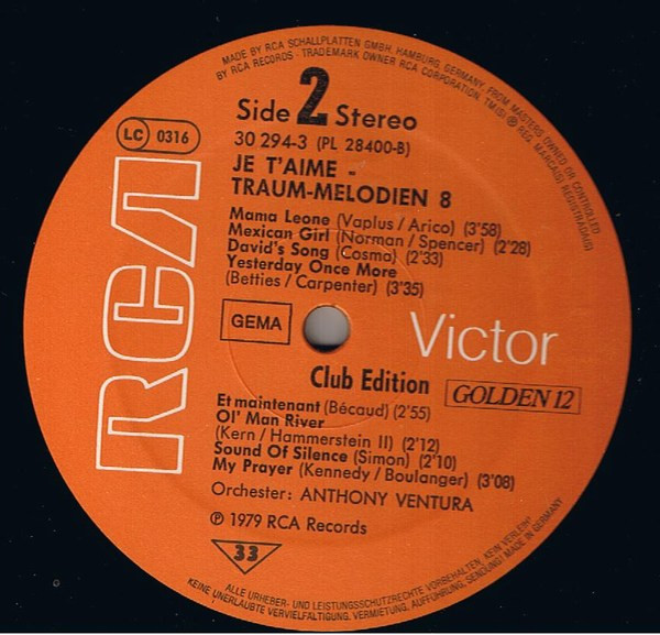 Made in Germany by RCA Schallplatten GmbH Hamburg -