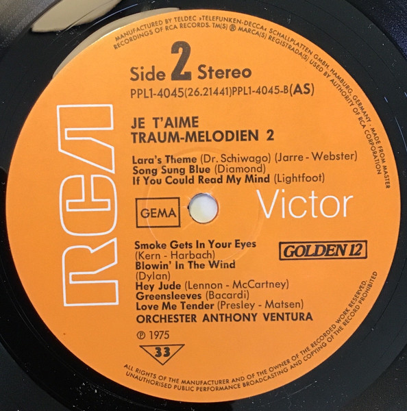 Trademark(s) used by authority and under control of RCA Corporation · Made in Germany by RCA Schallplatten GmbH [...] · from masters owned or controlled by RCA Records [...] · Printed in Germany · ℗ 1975