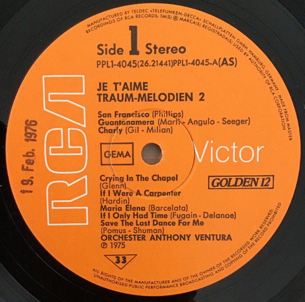 Released with different rim text on labels than Je T'Aime 2, Je T'Aime 2 and Je T'Aime - Traum-Melodien 2.