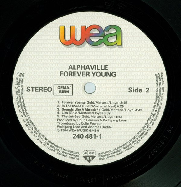 - Forever Young has "240 481-1 240 536-1 (for G.B. only)" printed on back of the inner sleeve