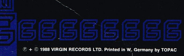 ℗ + © 1988 Virgin Records Ltd. Printed in W. Germany by TOPAC (on back cover)