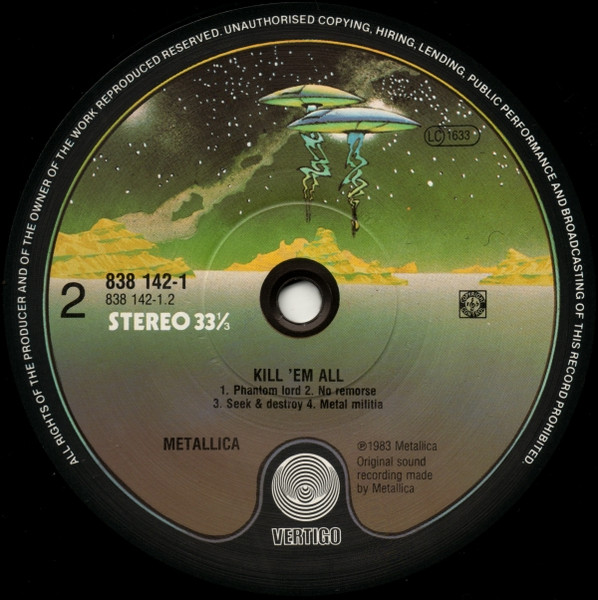 For a similar release made in UK with yellow Vertigo label design see: Kill 'Em All.