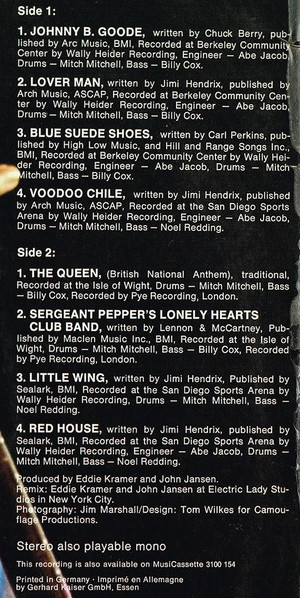 - Bass – Billy Cox (tracks: A1 to A3, B1, B2), Noel Redding (tracks: A4, B3, B4)