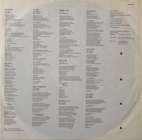 - Lead Guitar – Hanneman*, King*