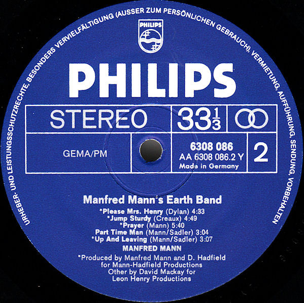 - Producer – Dave Hadfield (tracks: A2, A3, A5 to B3, B5), David Mackay (tracks: A1, A4, B4), Manfred Mann (2) (tracks: A2, A3, A5 to B3, B5)