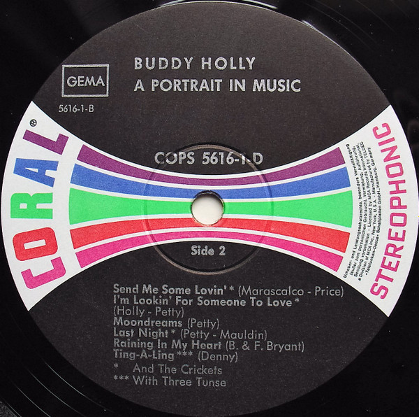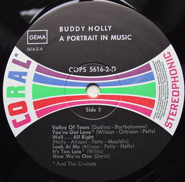 Note: Coral (On Sleeve) MCA Coral (On Labels) with tracks listed below centre hole and "Stereophonic" under MCA & Coral Logos