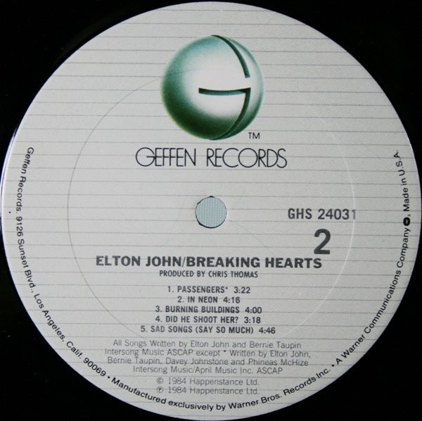 - Written-By – Elton John And Bernie Taupin* (tracks: A1 to A5, B2 to B5)