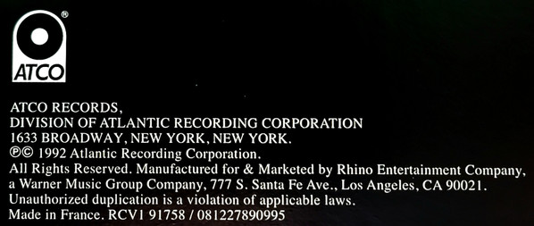 - Phonographic Copyright ℗ – Atlantic Recording Corporation