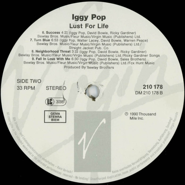 Tracks A1, A3, A5, B1: (Bewlay Bros. Music/Fleur Music/Virgin Music (Publishers) Ltd.)