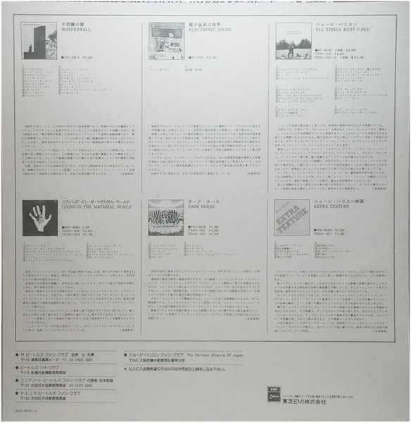 Includes printed inner sleeve, a 6-page lyrics insert and a Toshiba EMI catalog sheet.