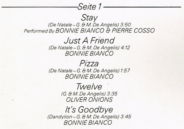 | A1 | Bonnie Bianco & Pierre Cosso– | Stay | 3:50 |