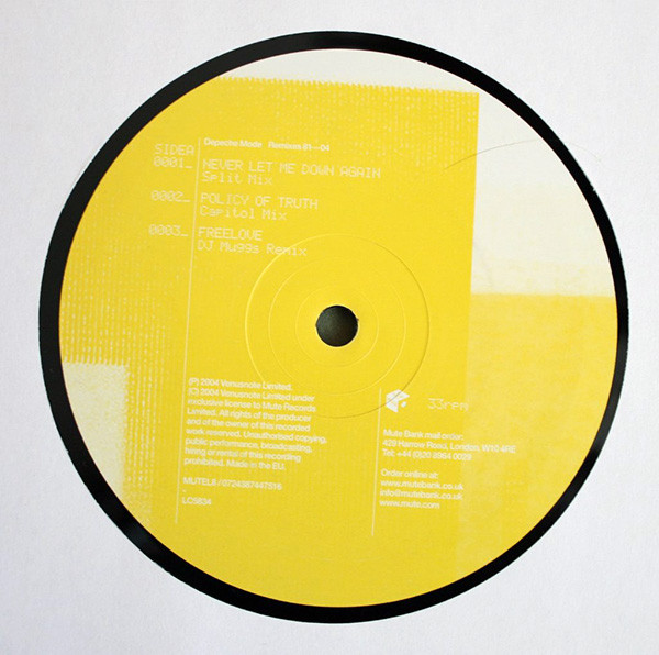 Never Let Me Down Again (Split Mix) Producer – Daniel Miller, Dave Bascombe*, Depeche Mode