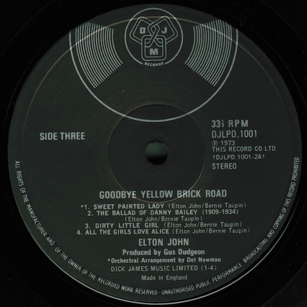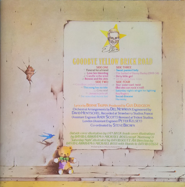Track A3 is spelt on sleeve as ‘Bennie And The Jets’, and on vinyl label as ‘Benny And The Jets’.