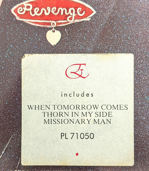 EURYTHMICS on cover front is in embossed printing.