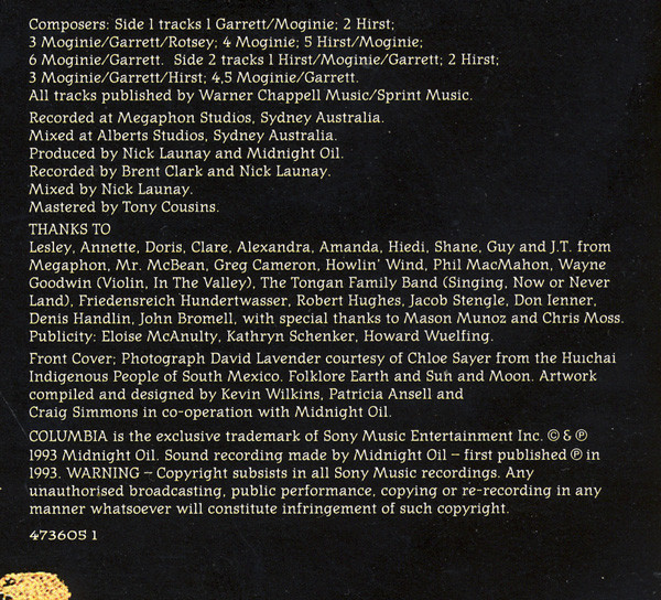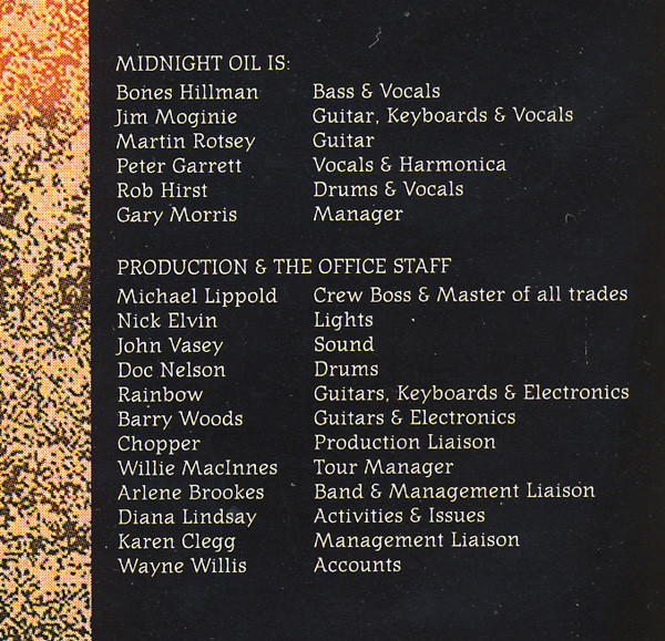 - Artwork [Compiled & Designed In Co-operation] – Midnight Oil