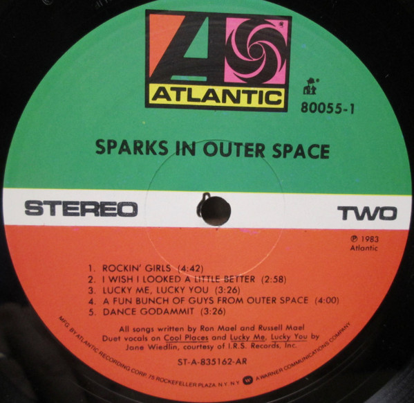 Another Allied pressing of Sparks - In Outer Space exists without the Jane Wiedlin label credit for backing vocals on two tracks.