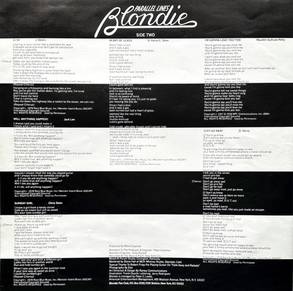 All songs © 1978 Rare Blue Music Inc./Monster Island Music except B5 © 1957 & 1958 MPL Communications, Inc.
