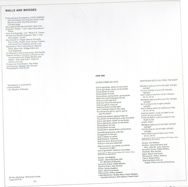 John Lennon - Walls And Bridges - Text on label rim in artistic font style.